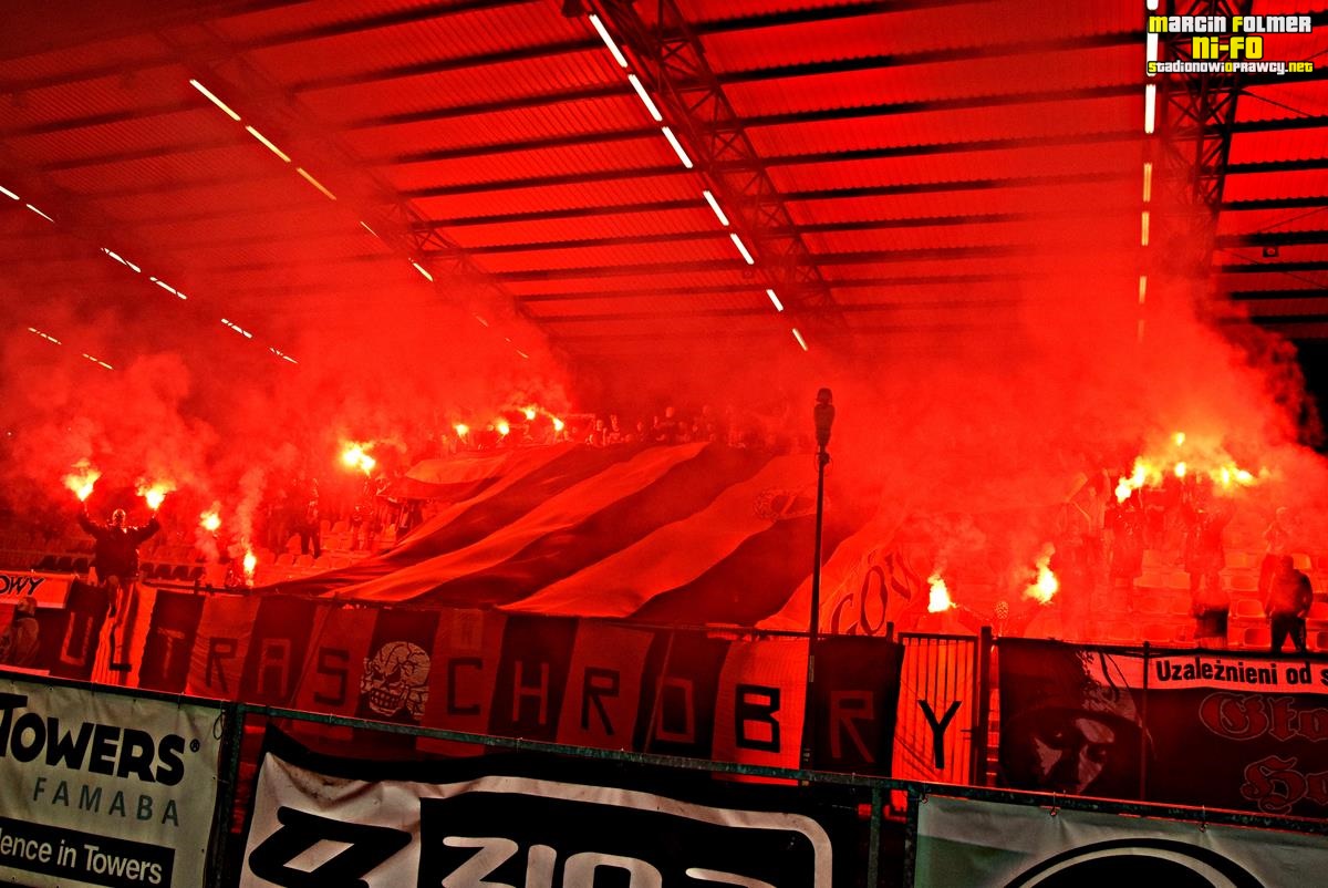 Na boisku Chrobry wygrał zgodnie z planem i na chwilę wrócił na fotel lidera. Aktualnie pierwszego miejsca już nie zajmujemy, ale sytuacja jest bardzo dobra, co zwiastuje emocje w kolejnych meczach. Szkoda, że przedmeczowe wydarzenia sprawiły, że sektor gości był tego dnia pusty. Przez to widowisko straciło na jakości, jednak mimo wszystko kto pojawił się w sobotę przy WS3, nie miał prawa żałować!